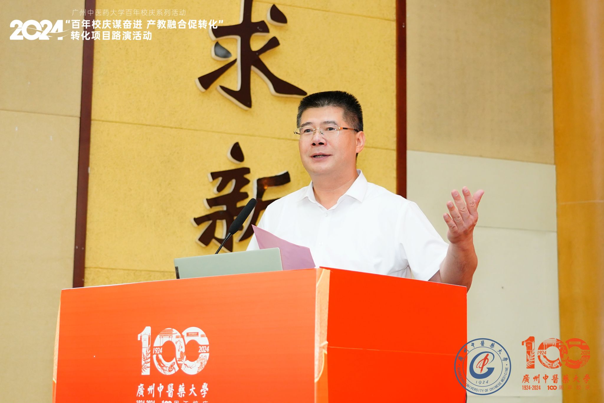 9月8日,taptap点点“百年校庆谋奋进·产教融合促转化”科技成果展示和项目路演在大学城校区举行。学校党委书记陈文锋,副校长潘华峰、郭鸿,中国中医药科技发展中心成果推广处负责人王泽浩,番禺区政协副主席师雁,大学城管委会副主任任树兵出席活动,番禺区科工商信局、卫生健康局,番禺区投资促进中心,广州大学城科技成果转化中心、创新创业促进中心相关负责人和校内相关职能部门及学院负责人参加。活动由副校长王宏斌主持。